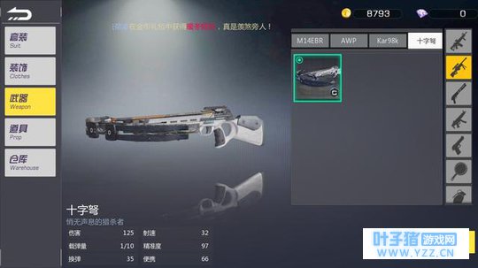 最后还有一把最特殊的副枪,那就是十字弩。管你什么头什么甲,一箭射中包你变成盒子精。大家有事没事的时候也可以捡起来玩一下,玩个乐子也挺有趣的,万一有一天练成为了职业弓箭手,说不定还能射出几把吃鸡来。 |