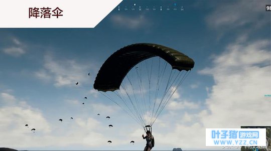 降落伞:在从飞机上选择好落点后,下一步就是要跳伞了。一个完美的跳伞操作可以让你比飞同样地点的人更快的落地寻找武器和载具。跳伞的基本操作就是要按完F跳伞后,按住W不放,让人物1以最快的速度冲刺飞行。这个时候千万别手动打开降落伞,一定要让它自动打开。降落伞打开后,按住W/S/A/D进行微控下落,这样的操作可以降落在房顶,或者是降落在距离最近的载具旁。