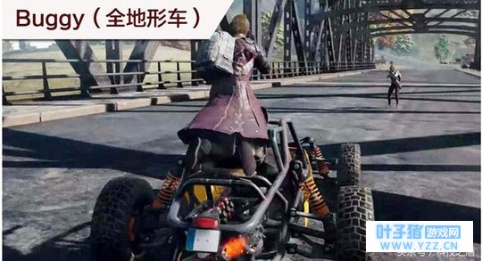 巴吉Buggy沙漠赛车(全地形车)是一种由后轮驱动、前部轻、在沙漠里的转弯切变线能力很强、过弯非常的灵活的车型。在游戏中同样,它转弯灵巧,地图的适应性非常高,并且爬坡能力极强,在多山多丘陵的地形上非常适合,且该车经常一遇到小起伏就会跳起来,所以广大玩家们赋予了它“蹦蹦车”的称号。