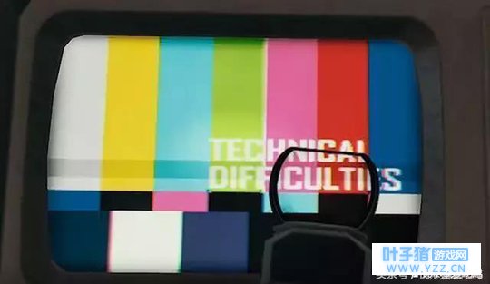当其走进房间时看到了桌上有好多信号故障的显示器,并且还有署名,怀着好奇心仔细看了一下,发现屏幕右下方有两行文字technical difficulties(技术上的困难)