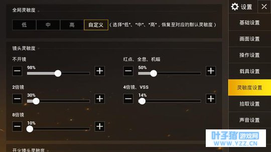 2、镜头灵敏度的设置。这个选项其实是很重要的。很多玩家一般都会选择默认系统自带的设置。其实自己设置自己适合的灵敏度才是最舒服的。