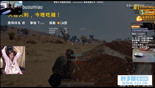 直到全局只剩下最后一名玩家的时候画面更是搞笑,安全区位置只剩下一个小圈。雪哥也不太避讳自己的藏身位置,直接探出身子瞄准住了对方的身影,不过由于对方一直在移动,雪哥点了十多发子弹才将其点死,而那位可怜的玩家绕着树转了好几圈,愣是没看到雪哥在哪,绝对称得上是含恨而终!成功吃鸡后妃凌雪也是非常高兴,又摆出了反手抱椅子的常规动作。 |