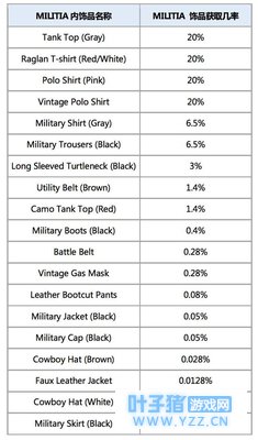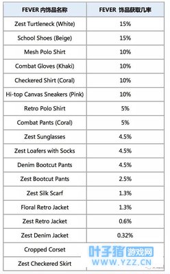 当然,如果你是欧皇玩家的话,还可以从这个FEVER付费箱子中开出一整套服装而不是单件,前提是你的你八百年没洗手(哈哈哈~)。下图是FEVER箱子中开出各饰品的概率。