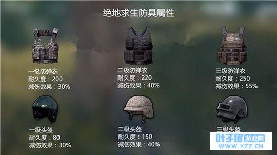 ①一级头盔的耐久只有80,一枪必废,也就是说一枪命中头盔基本就会破碎,而且会造成枪械70%的伤害,这样算来也就只能抗得住UZI和手枪了;但如果是破损的二级头,虽然一枪也会破碎,但却能给你带来40%的减伤效果。 ②二级头面对98K毫无疑问一枪爆头倒地,但再垃圾耐久的三级头也能保证你面对98K一枪不会倒地。 结论很清晰不是么。 下面我们聊聊防弹衣防弹衣的耐久度差距不大,重要的是不同等级防弹衣提供的不同减伤效果。
