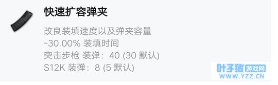 步枪快速扩容弹夹。 有扩容不用快速,有快扩不用扩容,增加的弹容量和30%的换弹速度,在对枪中可以让你占一定的优势。