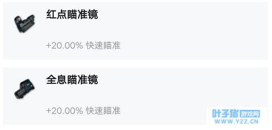 基础瞄具—红点/全息。 萝卜青菜各有所爱,全息和红点的倍数是一样的。它们都只有1.25倍的放大功能,具体选择因人而异。