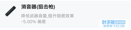 狙击枪消音器。 如果说倍镜是杀敌千里之外,那么消音器的存在就是可以让你杀人于无声,中远距离拥有一把带有消音器的狙击枪可以让敌人陷入找不到你的恐慌之中。