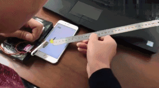 他先用尺子在屏幕上测算出盒子之间的各种距离,然后计算出对应的蓄力时间,之后在物理外挂的电脑程序上输入数值,驱动物理外挂按下屏幕,游戏中的小 跳棋 就成功跳上了另一个盒子。