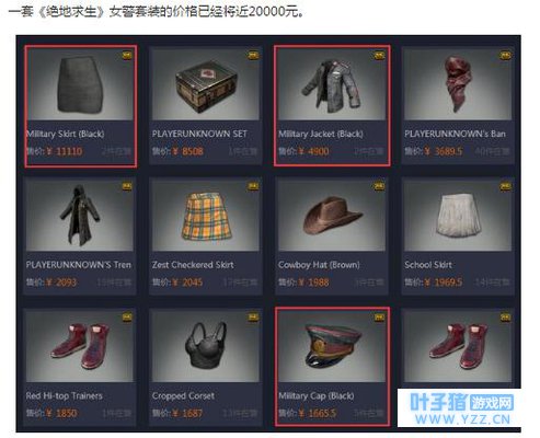 在第三方交易平台上,可以看到最稀有的黑色包臀裙的价格已经破万,而仅仅紫色品质的黑色警官服价格也已经逼近 5000!!