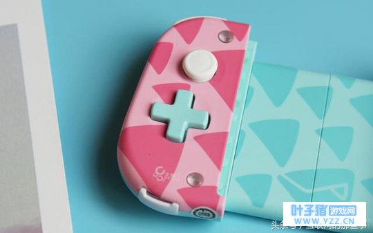 北通W1整体的产品尺寸为153*89*27mm,重量仅有128g,拿在手上非常的轻巧,随身放包里携带毫无压力。在配色方面,北通W1相对市场上黑色调的万年不变颜色来说,显得很另类,有蓝紫色、红黑色、粉绿色三种配色,撞色设计融合着当下流行的时尚元素,足以满足不同人群的需求,而小新拿到的这款则为粉绿搭配,加上不规则的三角图案点缀,更适合萌妹子使用。