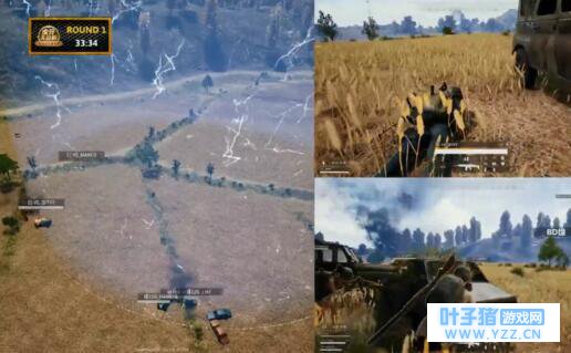 如图所示可以将载具卡在毒边,然后何人进行对战 三、草丛碾人 相信大家都很恶心草丛和麦田的伏地魔,最后决赛圈可以开着车子疯狂碾草丛和麦田,往往能出其不意撞死多人哦!