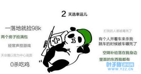 第二种: 天选之子,10杀吃鸡是高手,但0杀吃鸡则是高高手.. 什么落地不动结果成了决赛圈,第二名无缘无故摔死,,反正就是连自己怎么赢的都不知道..当然,更多的是火并总能赢、决赛不小心撞死对手啥的幸运儿..