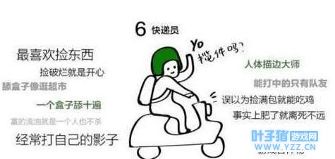 第六种: 职业快递员,人见人爱、花见花开的快递员,有不喜欢的吗? 东西捡了一堆,从脚趾武装到牙齿,然而谁都打不过,被妹子勾引推、被大神缴枪,刚枪不是卡了就是抖了,一身随缘枪法闯天下。