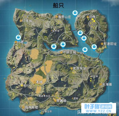 接下来,这张图是吃鸡地图,船只所在的位置,大家还不知道我们飞的地方还有一个船吧,大家可以进行尝试。