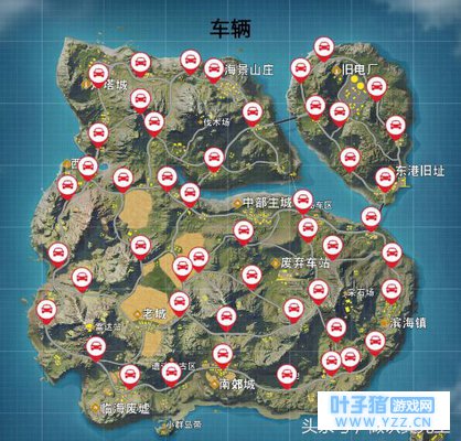 这张图,显示了我们吃鸡地图中,汽车所在的位置,小编粗略的数了一下,地图车辆50辆,还在为跑不出毒圈而发愁吗,那就赶紧记下我们车辆所在的位置吧。