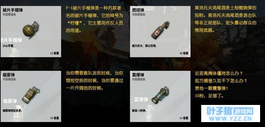 再就是霰弹枪,现在大家不都是常常会讲一句喷子面前人人平等吗?就算你是三级甲也挨不住我两喷,霰弹枪小编则最喜欢使用S12K,搭配12口径的弹药可以说近战之王,装上扩容弹夹之后秒变8连发,遇到人的话直接开喷就行了,真的是遇神杀神了。 4. 投掷品