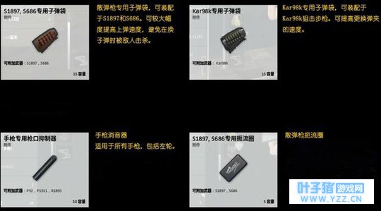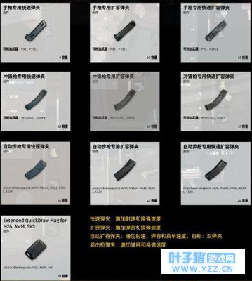 再者就是枪口、枪托和握把了,每种物品都有着不同的属性,这里就不细细说明了,看大家喜好如何搭配了。 14. 弹夹