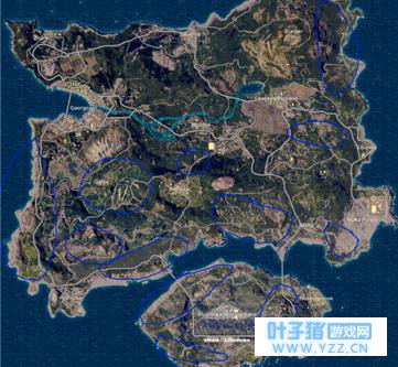 那么下面重点来了,小编在这里并不建议新手们在刚刚玩这个游戏的时候每次跳伞都跳以上标识点,因为这些地方是整张地图资源最多的地点,是每个玩家都想去的地方,乃是兵家必争之地。