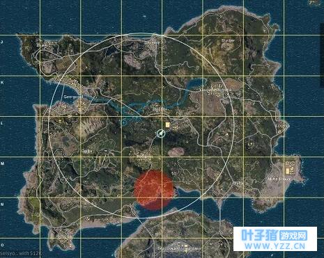 这边小编建议新手们一开始可以先挑蓝标地区,比如左边海滩的一排连续的建筑物,如果你一个人的话沿着海滩一路搜过去的话也能养活自己了。跳这些地方有一点好处就是,很少有人或者团队会跟你们争抢这边的资源,避免下去就钢枪、钢拳头,很大程度保证了新手们不会落地就成盒的悲剧发生。第二个就是跑毒和远离轰炸区,这是游戏的特有机制,每过几分钟就会刷新一个安全区,你们必须在指定时间内到达安全区内,否则你们就会被毒死在外面。同时也会随机产生轰炸区,就是下图红色区域,虽然小编从来没有被炸死过,但是亲眼看到两个队友在前面开着摩托秀车技,突然被一发炸弹瞬间炸死,之后小编很不道德的把死亡队友的包都给摸了一遍。