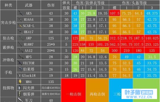 至于头盔这笔数就比较容易算了,只需计算致命一击的伤害值再结合其他参数便可算出百分比。头盔承受的攻击都是比较致命的攻击,比如98K能秒二级头却秒不了三级头,所以有时候低耐久的三级头在某方面来讲是个不错的选择。至于详细的耐久百分比,小编还是留给大家课后去算。最后,祝大家数学学得好,游戏也打得好。 |