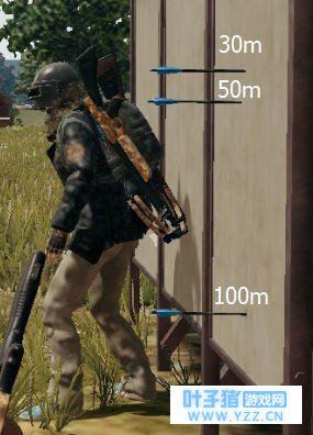 由于十字弩自带瞄具,且只能装填四倍镜以下的瞄具(包括四倍镜),所以小编在游戏中对瞄具进行了测试,以上是30m距离使用不同瞄具射击点位的图,瞄准位置是与蓝色垃圾箱顶部的高度。 通过测试小编得知,最适合弩箭的瞄具还是自带的瞄具,开镜后的归零距离是25,而装填了其他瞄具的弩箭,开镜后的归零距离就成了50-100,配上它奇葩的下坠,造成了上图中诡异的弹道图。 奇葩的初速度