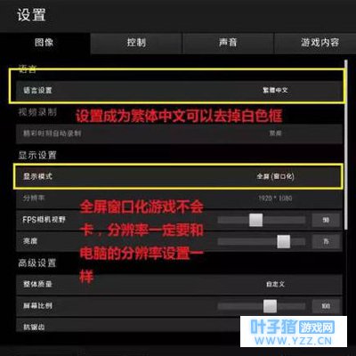 No.1图像 将显示模式调为全屏,游戏分辨率要和电脑分辨率一致,亮度调为100,这样可以避免房间里看不清敌人。其次,高级设置里,除了抗锯齿、纹理和可视距离调高外,其他都设置为最低。同时这位小伙伴还建议将垂直同步选上,不过社长不建议开垂直同步。