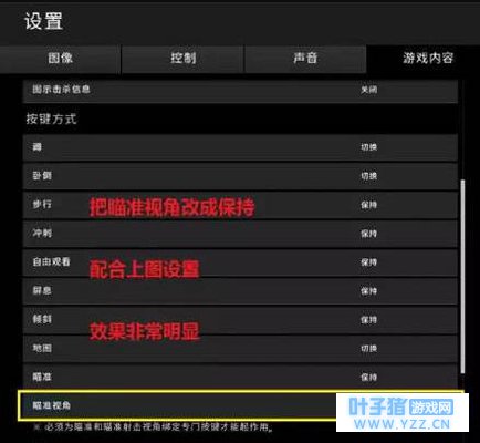 No.2游戏内容 将物品栏角色渲染关闭,否则游戏画面容易不流畅,地图缩放灵敏度调至最大,按键方式中,将步行、冲刺、自由观看、屏息、倾斜和瞄准及瞄准视角都改为保持,其他为切换状态。