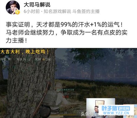斗鱼大司马膨胀了,吃鸡开挂还称自己是天才,网友:实力皮