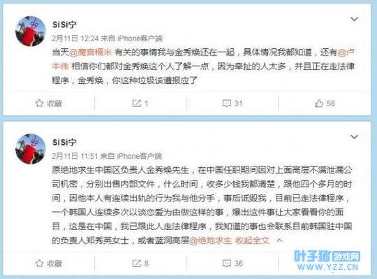 《绝地求生大逃杀(PlayerUnknown’s Battlegrounds)》是近一年来最火热的游戏,游戏的火热也催生了许许多多的衍生行业,大家最关注的莫过于游戏中的神仙打架——外挂行业了。近日,因为实锤魔音糯米而受到大家关注的韩国驻中国负责人金秀焕,也被疑似自己女友的“SiSi宁”曝光私下出售公司内部文件,收平台贿赂,并有多次出轨行为。