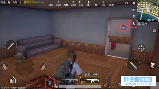 在进入游戏之后,游戏的左上方会显示剩余玩家数量与击败敌人数。通过这项数据,我们可以直观地判断自身需要以怎样的战术稳定吃鸡。 在屏幕的左下角,可以进行左手射击、摇杆控制以及查看背包。这些操作都是显而易见的,大多数玩家习惯使用右手射击,但是在一些特定的情况下,选择右手射击还需要移动枪械准星,这时运用左手射击更方便。摇杆控制灵活度大,其可以让玩家操纵角色向四面八方移动。而查看背包不仅仅是为了观察自己拾取了哪些物资,在查看的过程中,可以将一些占空间的物资丢掉或将一些有用的配件装备到枪械上。
