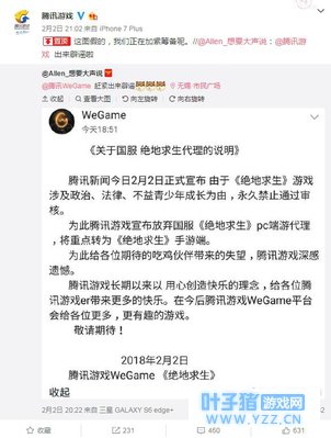同时,腾讯游戏官微也在2月2日正式回应了之前网上所传WeGame上所发内容进行了澄清,并且强调目前绝地求生这款游戏腾讯也在加紧筹备中。