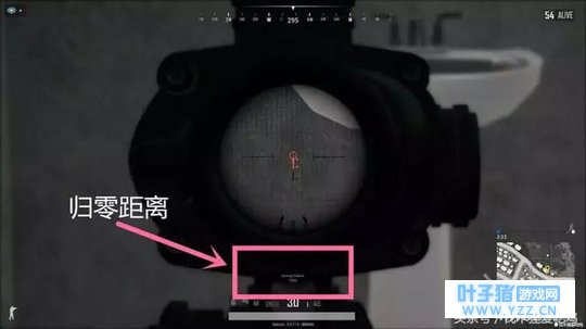 图中框住的部分就是归零距离,图上的归零距离设置的是100m,如果敌人刚好在100米左右,那就是瞄哪儿打哪儿。