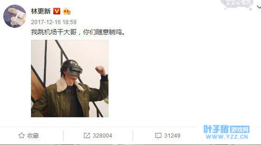 还有很多沉迷于吃鸡的明星,如陈赫和林更新,这两位的动态圈可谓是经常能看到有关吃鸡的消息,小编已经重度怀疑他们俩每天花在吃鸡上的时间不低于三个小时……