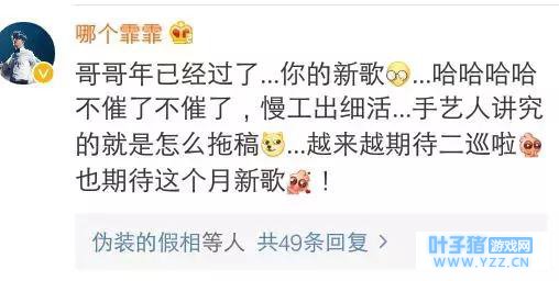 今天老薛以让人惊掉下巴的速度更新了一条微博,表示要放弃“吃鸡”,努力创作新歌,并表示新歌,下个月见,照片还扎了一个小啾啾,太可爱了。 等等....之前在新加坡做采访的时候不是2月份吗,说的也是下个月出新歌,那不是3月出新歌吗,这下在3月的第一天又宣布下个月出,还真是任性啊! 不过看着老薛的微博慢慢恢复当初的模样,小柒脸上也露出了老母亲的笑容,也会跟着评论一样,祝福老薛,慢慢等待新歌......