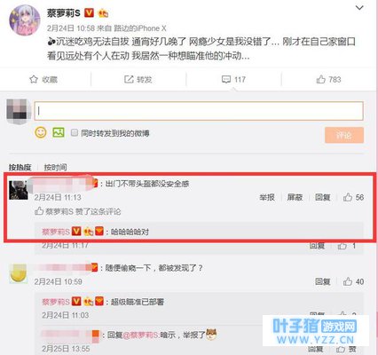 网友倒是在下面回复到,出门不带头盔都没安全感,而蔡萝莉还和网友调侃了起来,这篇微博似乎引起了不少粉丝的共鸣,纷纷在下面回复起自己在吃鸡里养成的现实习惯,可以看出来大家真的很用心在玩这个游戏啊。