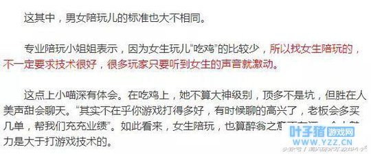 陪玩总的来说就两种类型,技术型和搞笑型,,有些老板需要技术型的就提要求,必须得吃到鸡,吃不到鸡和吃到鸡的收入肯定是不同的,遇到脾气不好的老板直接开骂都是很正常的事。如果是全职的陪玩,一个月大概能接100-120单左右,上百单所耗费的时间和精力挣得也是辛苦钱。据陪玩师透露,当进入陪玩这一职业,根本就没有什么作息时间,熬夜通宵都是家常便饭的事,曾经一个老板让她连续熬了6个通宵。6个通宵虽然确实能挣不少钱,但是这却是在用身体换金钱。小编虽然羡慕高收入的职业,但是更倾向于保重自己身体的工作,毕竟身体是革命的本钱!