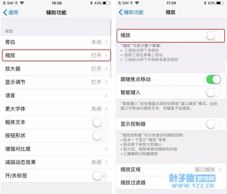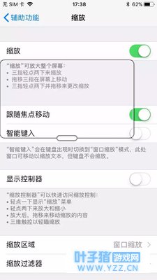 我们开启“缩放”功能后 就可以快速打开关闭这个功能了 只需要轻点屏幕三下 即可开启或取消