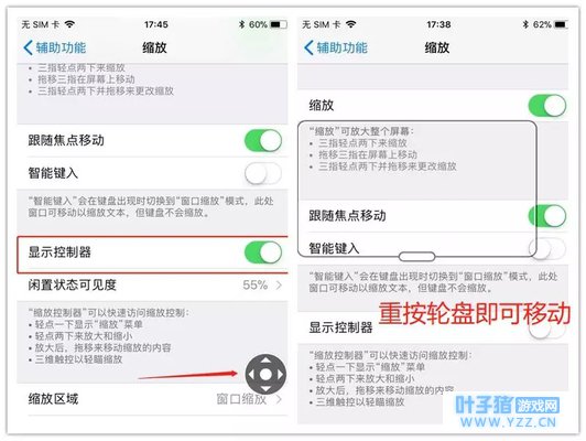 轻点两下轮盘 就可以一键开启和关闭缩放窗口 支持3D touch功能的机型 直接重按轮盘 就能快速调出缩放窗口 游戏体验如下