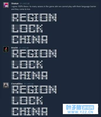 这些评论与《绝地求生》似乎极为相像,毫不意外,在Steam的官方更新公告底下再次看到了一些外国玩家在跟帖请求封锁国区,“region lock china”。