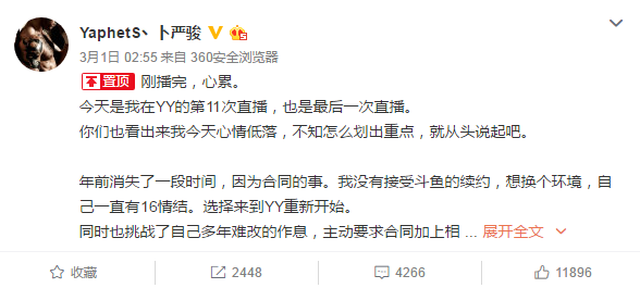 而不久后,Pis又发出了新微博,说YY高层撤销了决定,但自己还是决定离开,并退还粉丝礼物。