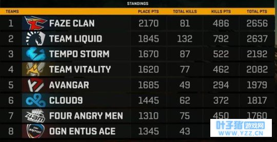 全部五场正式赛结束后,4AM战队的总积分榜排名从昨天的第10跃至第7,iFTY与GOL分别位列第14与第16名。