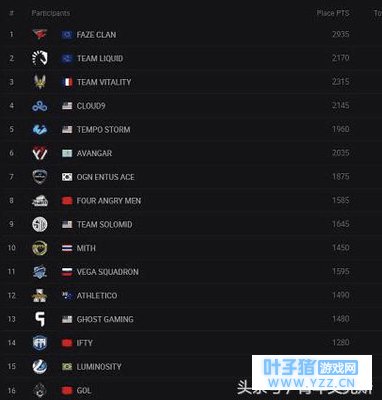 联赛结束,FaZe夺得冠军。中国战队均为取得好成绩,4AM排名第8,iFTY第14,GOL垫底。恭喜gol战队进入国际赛16强。 |