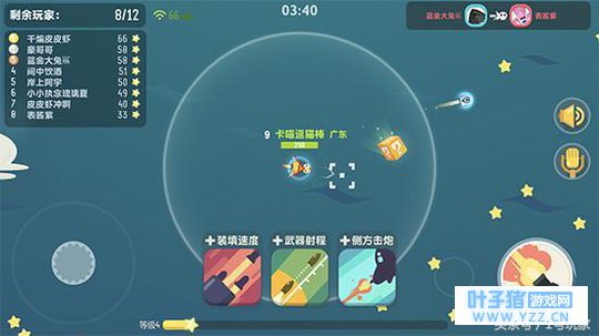 然后就是三种游戏模式,单人竞赛可以说就是打飞机的“吃鸡”模式!吃星星升级武器,坚持活下来,乌云圈(毒圈)会越来越小,最后逼着你“群殴”和“单挑”。