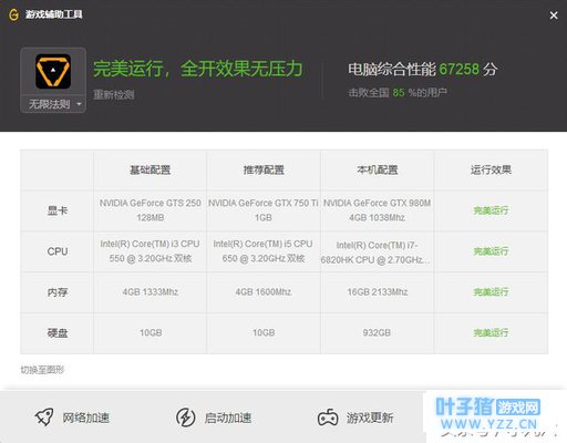 无限法则截图 硬件要求: 从wegame(腾讯游戏平台)的辅助工具测试中已经有了无限法则的配置推荐,笔者使用游戏本已满足要求。