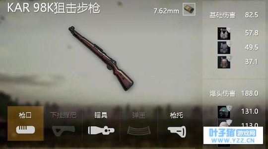 首先我们来谈谈98K,98K可以说是在游戏中异常受玩家喜爱,而且高手玩家特别喜爱使用98K,98K的特点就是爆发高,98K的基础伤害是82.5,爆头伤害可以达到188,只要不是三级头盔,都可以一枪秒杀敌方,十分强力,但是缺点也很明显,容错率很低,打移动靶很难。