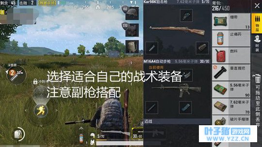 我们一般都是拿98K当做举例对象,98K的配件要求并不高,枪口和子弹袋就足够了!对,还要一个高倍镜,8倍镜最完美!枪口的选择一般是消音,或者是消焰器,这样,敌人就没有那么快通过声音或者枪口火焰来寻找到你!副枪搭配就不用讲了吧,一把步枪用作于近战和打远距离移动目标!
