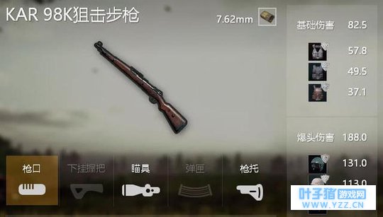 大家请看!98K这把枪最大的优势就是伤害了,98K的爆头伤害可以达到188,在没有三级头盔的情况下,一级头盔与二级头盔都是被秒杀的。 但是他的缺点也很明显!射速太慢,98K是拉栓式狙击枪,所以容错率十分的低。 而且98K的子弹下坠是十分的严重的,这把枪职业选手在比赛中是绝对不会使用的,职业选手在比赛中一般宁愿使用M416搭配高高倍镜切换单点模式充当狙击枪,因为98K的局限性太大,也就只能在娱乐局中虐虐新手。