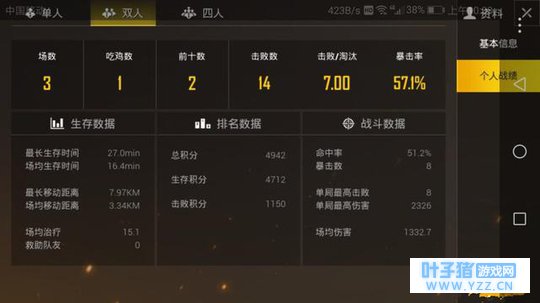 绝地求生:吃鸡战场双排打三场就总排行榜第二了?光子你怎么想的