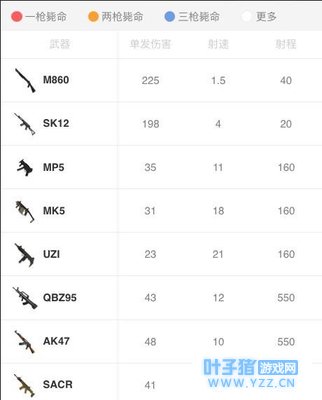 《荒野行动》部分枪械数据(图源:荒野行动官网) 但是“吃鸡”游戏就不一样了,不仅要熟练运用军事上常见的技巧,还要熟记各个弹夹、枪械的口径,M416、M16A4、SCAR-L等枪械的特性,不然捡到也是白捡。而且即使记住了某一个枪的口径,到下一局遇不到的话还是要重新学起,有一定难度。