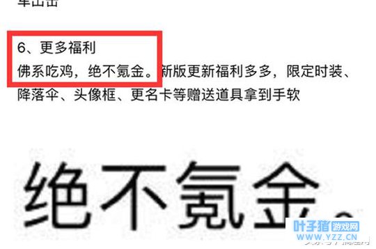 《绝地求生:全军出击》今天正式更新了1.0.4版本。在App Store的下载页面上,搞趣网发现在版本内容的描述中,《绝地求生:全军出击》不仅开始请来了彭于晏为游戏打CALL,还更新了尖兵试炼、自建房间以及捏脸等众多功能。 但是在第6点的内容中,我们却意外发现《绝地求生:全军出击》对更多福利的描述却是这样的:佛系吃鸡,绝不氪金!吓得小编立马截图为证了。